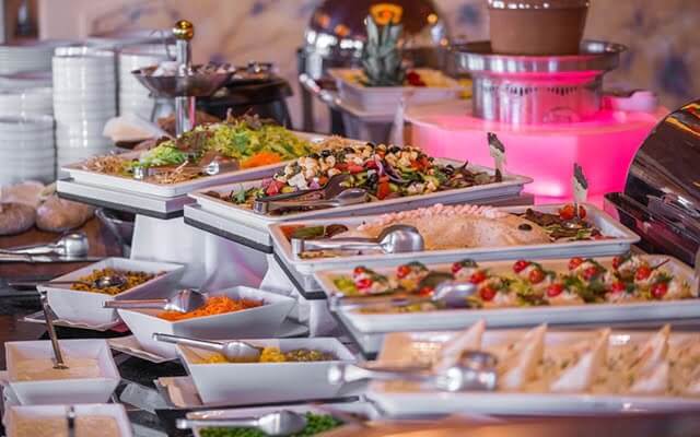 I vælger vores internationale buffet med et væld af retter fra ind- og udland.