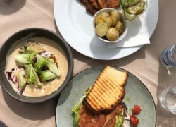 - Citronstegte unghanebryster med årstidens italienske garniture.